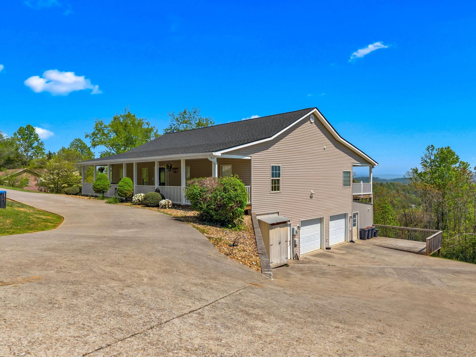 Panoramic Luxury Living with Unrivaled Mountain Views!Experience over 180 of breathtaking, unobstructed mountain views stretching from Tennessee into North Carolina, featuring iconic peaks such as Mt. LeConte and English Mountain. From radiant sunrises and fiery sunsets to hot air balloons drifting by, serene moonlit skies, and seasonal rainbows, this home offers a constantly changing scenery that creates an ever-changing and unforgettable natural backdrop.Step inside to a light-filled, open-concept floor plan designed for both comfortable living and effortless entertaining. Cathedral ceilings and an expansive wall of windows bring in natural light while framing the surrounding mountain landscape.The kitchen blends style and functionality with Corian countertops, stainless steel appliances, a counter-height bar for seating, and a built-in desk area for added convenience.The primary suite offers a private retreat, highlighted by a newly remodeled, spa-inspired bathroom featuring a real marble vanity countertop with marble-inspired finishes, a walk-in tiled shower, and a relaxing garden tub. The suite also includes a walk-in closet, direct access to the porch, and stunning mountain views from both the bedroom and bathroom. The secondary main-level bathroom features Corian counters and a tiled shower.The lower level adds exceptional versatility with an in-law suite-style layout, featuring a flex/bonus room, kitchenette, additional living space, and a full bath with a walk-in tiled shower. A dedicated home theater room with tiered seating and acoustic panels creates an immersive experience. The walkout lower level is ideal for guests, extended stays, or multi-generational living. Mountain views continue from the lower level, adding to the home's unique appeal.This move-in ready, clean, and well-loved home combines space, comfort, and one of the most spectacular unobstructed mountain views in the area, offering a rare opportunity to experience peaceful, elevated living.Recent updates provide added value and peace of mind, including a remodeled primary bathroom and new roof and gutters (2024) with transferable warranty. A 2.5-car garage, two large storage areas, and a cedar closet/safe space. The flexible layout supports both main-level living and expanded lower-level use.This home is truly one of a kind!Conveniently located just 4 miles from I-40 and less than 10 minutes to downtown Jefferson City, with easy access to Knoxville, Sevierville, Gatlinburg/Pigeon Forge, and the Tri-Cities.
